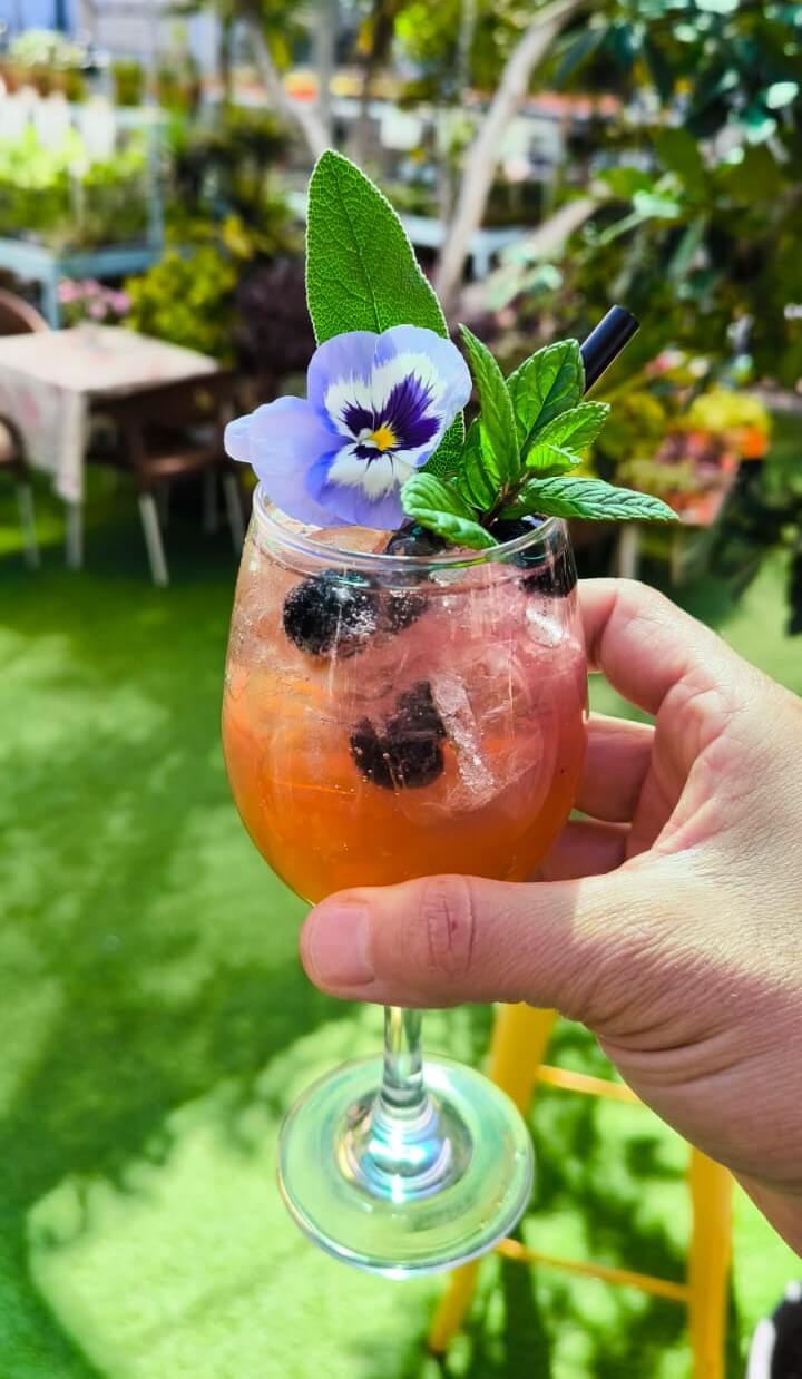 במרחב הישיבה, בין הפרחים והעציצים, ניתן להנות קפה טוב ומתפריט מגוון וטרי