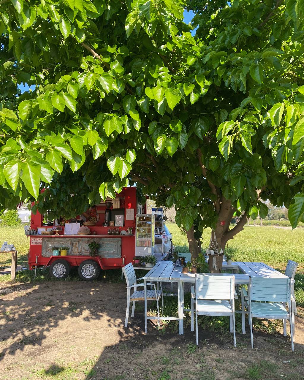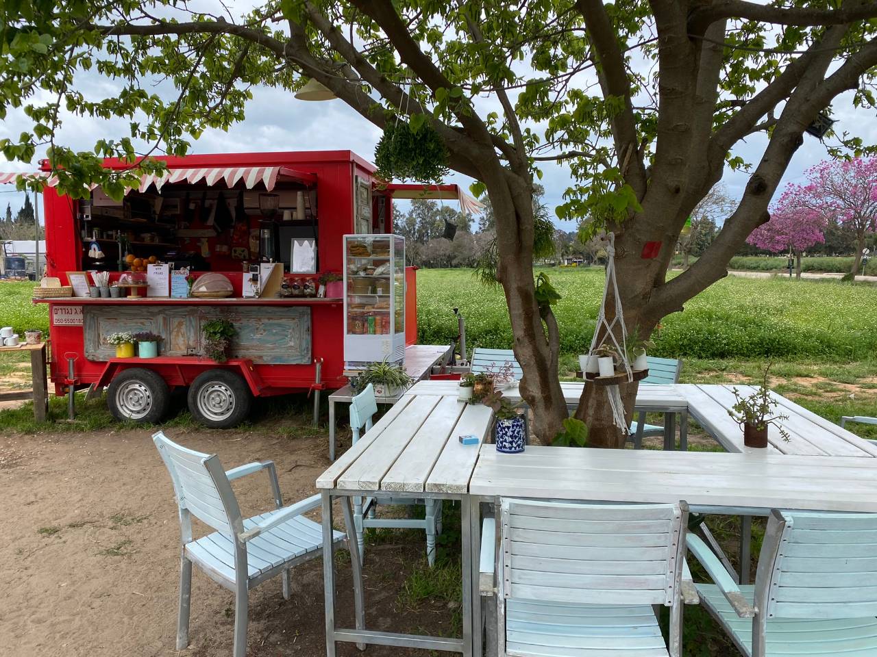 היא החליטה שזה הזמן לממש את החלום ולהקים עגלת קפה משלה. המקום הנבחר היה בכניסה למושב. העגלה ממוקמת בצל עץ תות גדול ויפה, ובסמוך לשדה תלתן, בו ניתן לצפות בעונות השנה לפי מצב השדה "בחורף הזרעים נובטים והכל ירוק, באביב קוצרים והוא משתנה לצהוב."