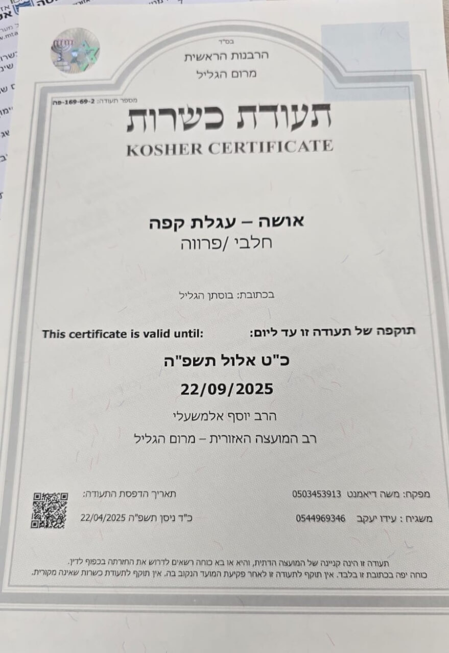 העגלה עם תעודת כשרות של רבנות מרום הגליל