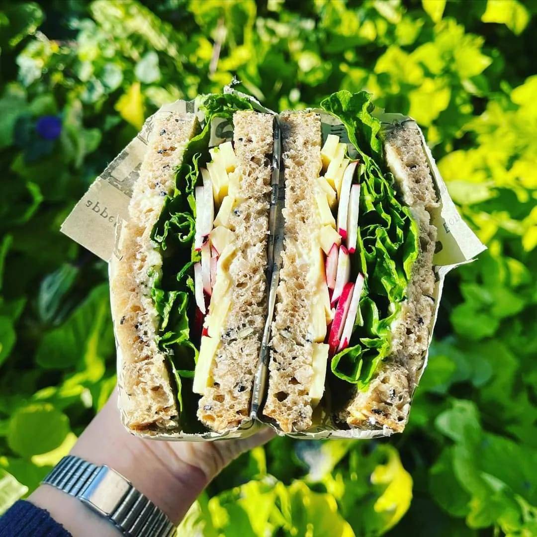 כריך טבעוני, סלט חווה, מאפים מתוקים