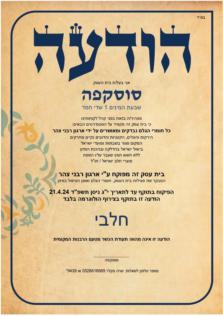 העגלה בפיקוח רבני צוהר