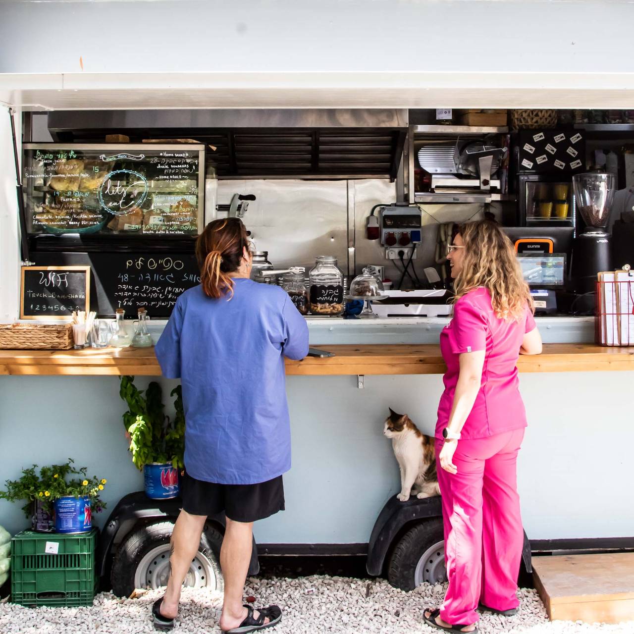בנוסף, מדובר על לוקיישן מצויין: "באמצע הדרך, בין זכרון יעקב ליקנעם, לפני כביש 6", הם מסבירים. "העגלה ממוקמת לצד שטח רחב ידיים ותחום, בו ילדים יכולים להתרוצץ. יש צל, חנייה בשפע, הכל מאוד פסטורלי ומאפשר להתנתק מדאגות היום יום".