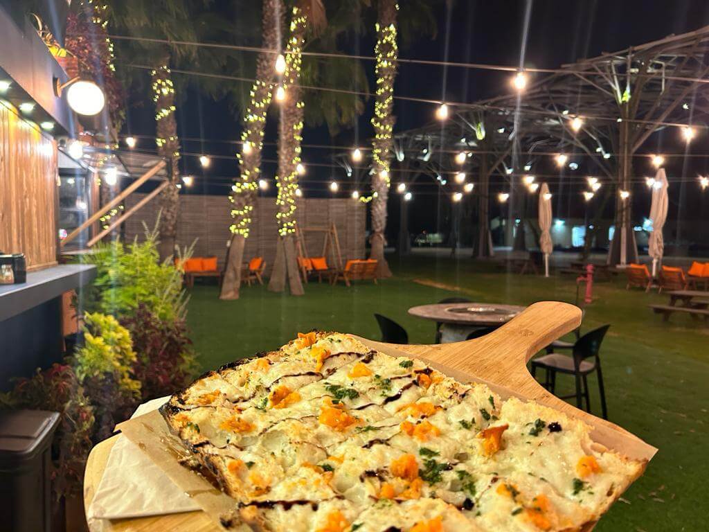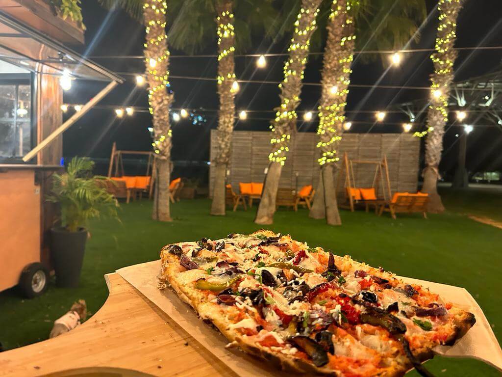 פיצה עם תוספות, סלטים, מאפין וניל קרמל