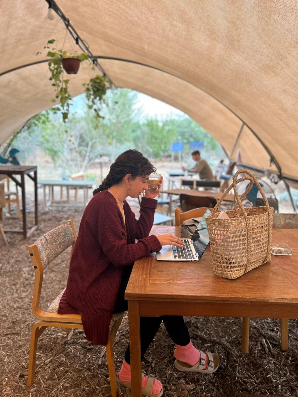 בית קפה FARM 2 TABLE רואים את התוצרת בעיניים, גדלה משני צידי הקפה, בפרקטיקות של חקלאות בת-קיימא. קפה טלק 100% ערביקה, קפה נטול קיקו 100% ערביקה