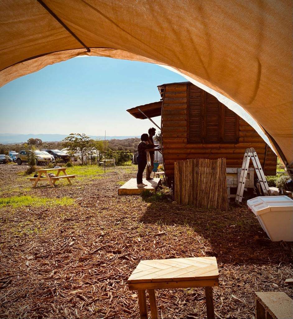 באופן טבעי ניצן מיקם את העגלה ביער המאכל. "המקום נראה יותר כמו שמורת טבע ולא כמו משק חקלאי", הוא מספר. "יש פה פינות ישיבה עם צל ונוף לעמק ולכרמל, והאווירה פה נינוחה ומשפחתית".